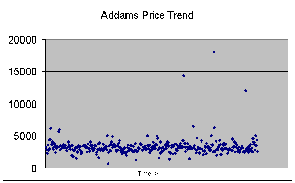 This eBay sales summary has been collected from successful eBay pinball machine sales over the last 30 months (May 2008). This summary represents 19,956 machines sold on eBay during that time period. The list is hand compiled, so there may be errors or omissions. The list should only be used as a guide to value, and does not represent the condition of the machine The list starts below the two graphs.