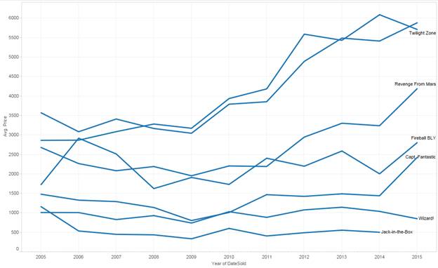I’m using a new tool to create the graphics, so it’s easier to show several machines. I’ve chosen a sample of different types of machines so we can see how the trend is across the machine types. It seems to me that the “collectible” machines are continuing their strong increase in value.